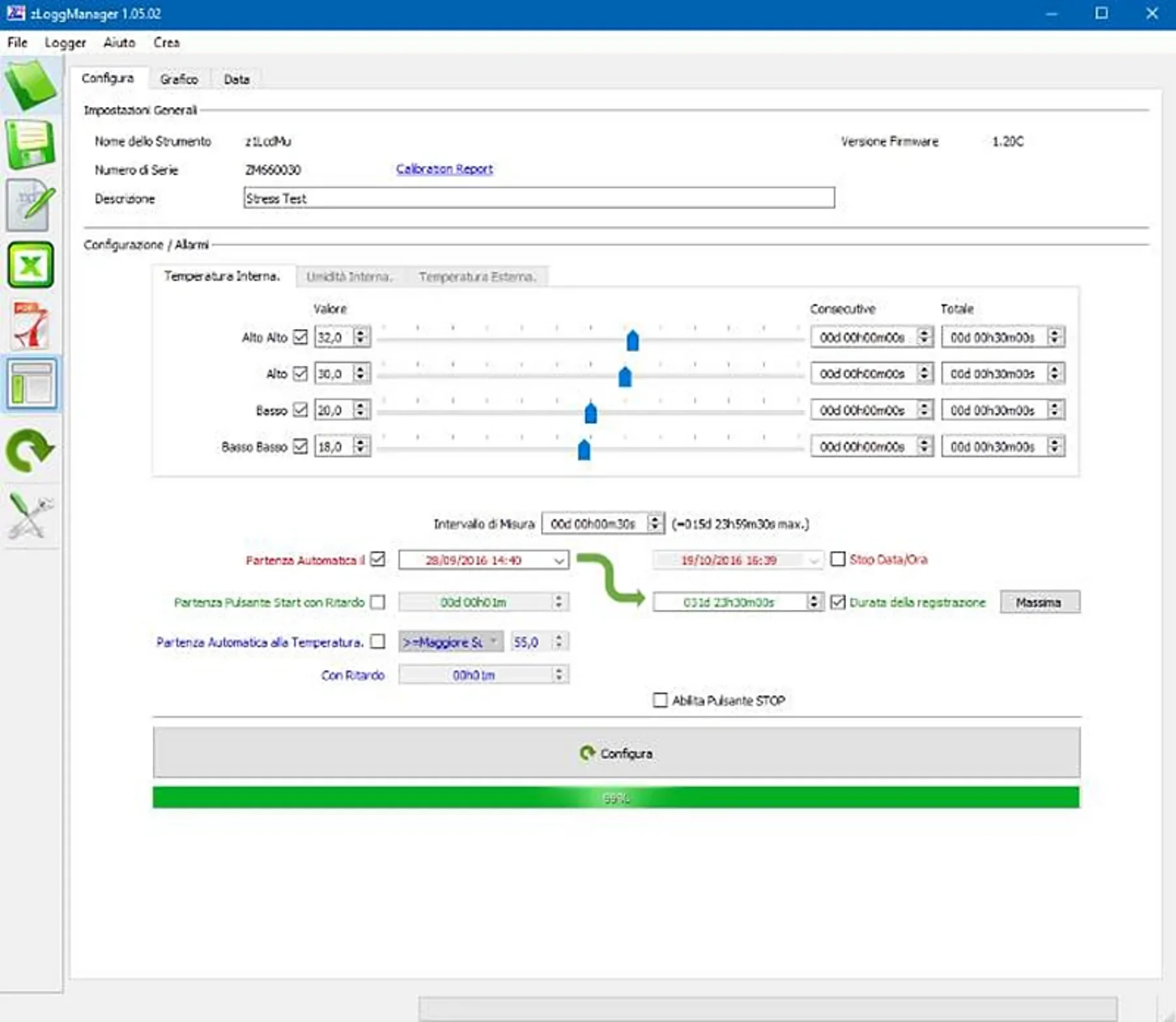 - Salvataggio automatico dei dati in formato ZLG, TXT, CSV e PDF