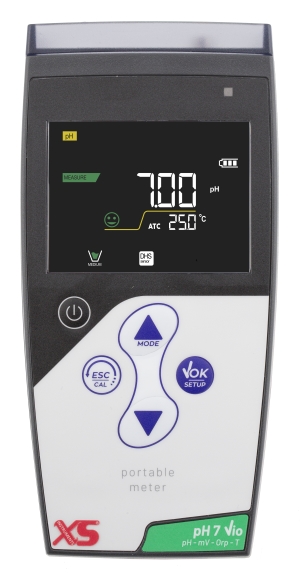 Il pHmetro portatile XS pH 7 Vio è uno strumento professionale caratterizzato da un innovativo display LCD a colori ad alta risoluzione e retroilluminato, che garantisce un’eccellente visualizzazione dei dati in ogni condizione di luminosità. È possibile regolare manualmente o automaticamente il contrasto e l’illuminazione del display per adattarlo alle diverse esigenze.